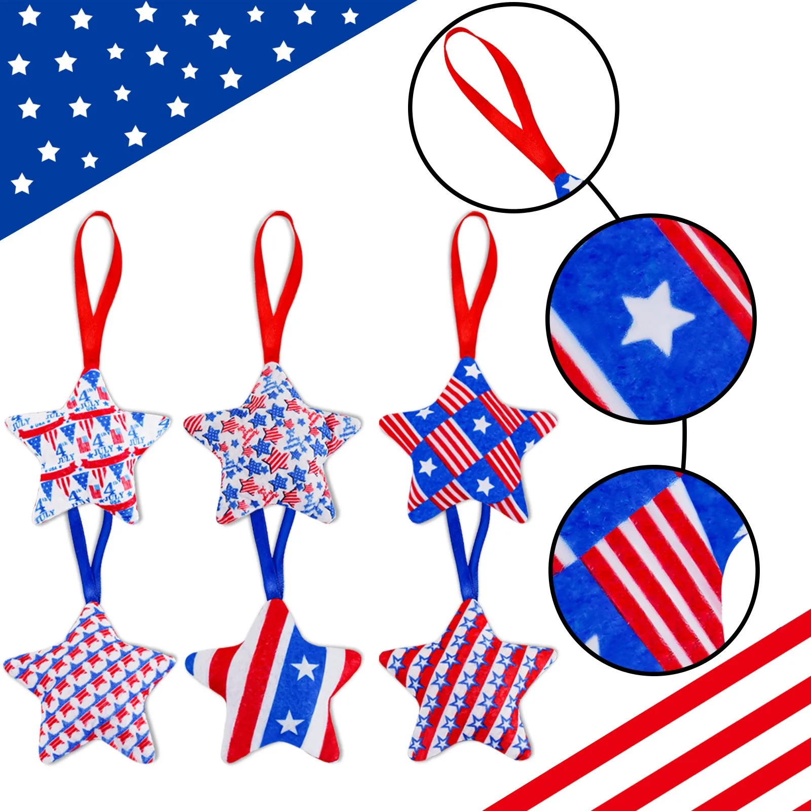Appropriate size: Each red, and blue hanging star decoration is about 3 inches from, perfect for hanging, eye-catching, and full of independent day elements; They are lightweight, won't crush tree branches, and come with ropes that can be easily secured to many things, making them an ideal choice for your holiday decorations