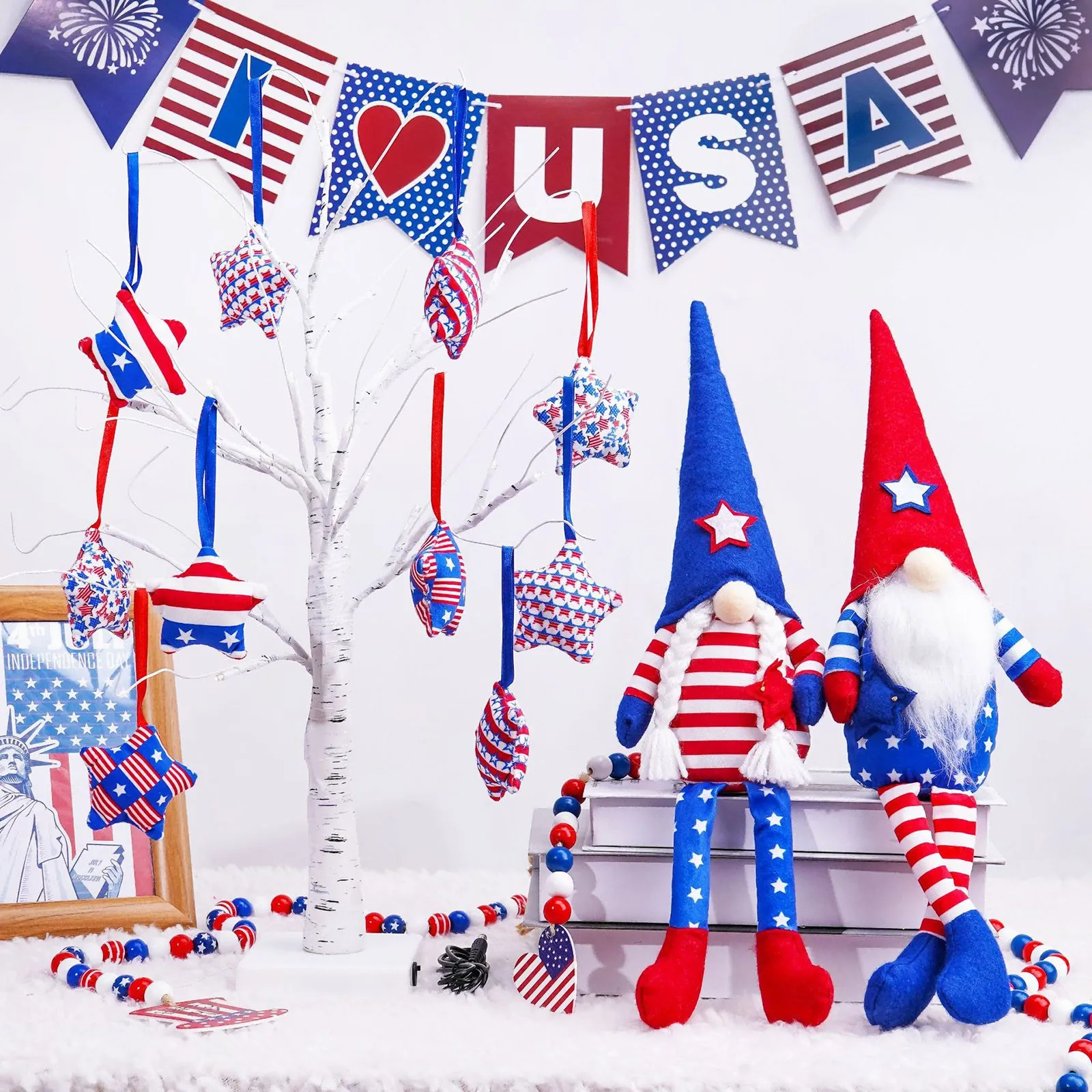 Application: These patriotic pendants are very suitable for indoor and outdoor use, and can be used to decorate tables, walls, doors, fireplaces or shelves in the home. They can also be hung tree branches in the front door or yard to create a patriotic atmosphere; Their patriotic elements mean they can apply to participate in celebrations, Memorial Day, Flag Day, Veterans Day, and other patriotic events
